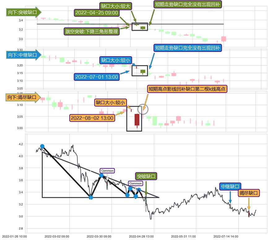 ➢ 2022-08-02 13:00形成:向下跳空【竭尽】缺口