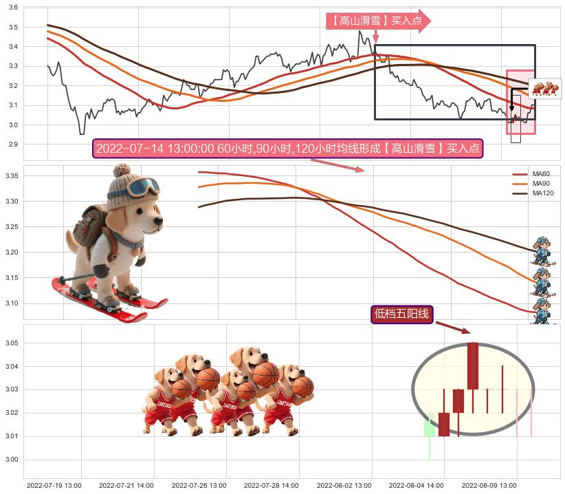 | 3 🅚:上涨镊子线(U形磁铁) ➕ 🎢:【高山滑雪】买入点均线组合买入点信号形成后,猜想后续下行结束,持续反弹上涨(均值回复) ☞ 看多信号 ⇥ 【均线】交织【🅚线】⇥ 综合量化分数: 60 | > |