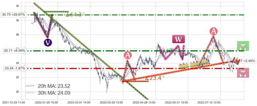 ♞ 20小时均线:23.52,30小时均线:24.09→ 快线<慢线