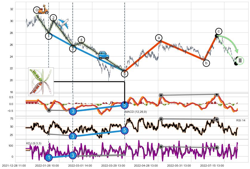 ➢ a,c调整浪MACD, RSI, KDJ走势都【未出现】背离,abc走势延续, 5浪反转概率增强