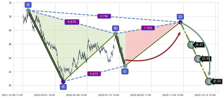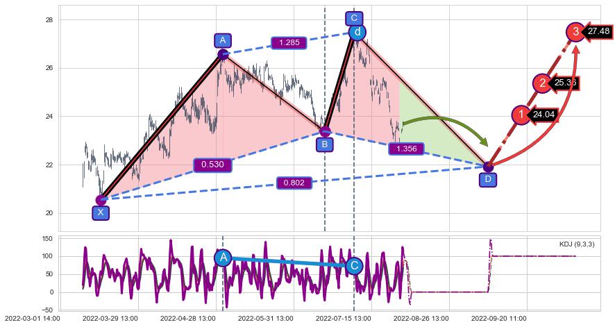 ➣ D点拟合预测价格29.16,距离最后交易收盘价格23.68相差 +23.14%