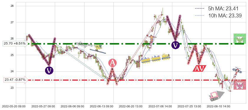 ➢ 【仅预测突破】最后价格:23.68与预测突破价格:23.84→【空间中等】后续最小【整理】第一目标价格→(08-19:12: 27.94 )