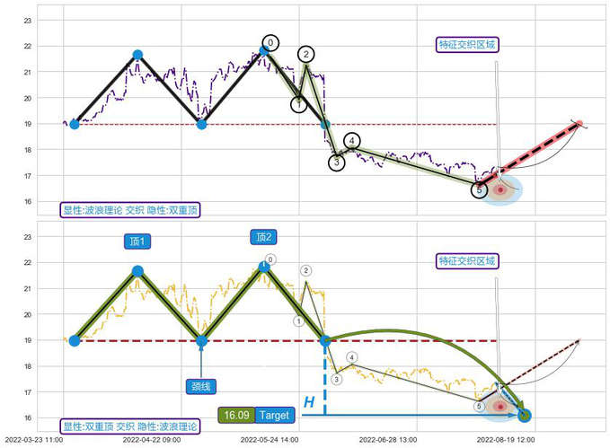 ➢ 波浪理论与双重顶信号事件周期长度级别相同,同周期信号事件