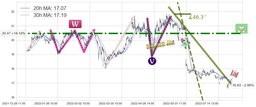 ♞ 20小时均线:17.07,30小时均线:17.19→ 快线<慢线