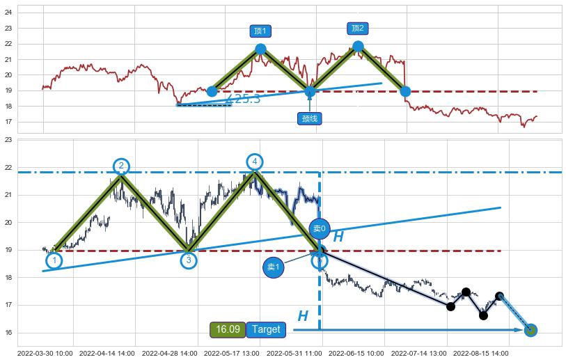 ➣ 【已确认突破】双重顶 起点:03-25:10,突破点:05-31:09,形态共214交易小时