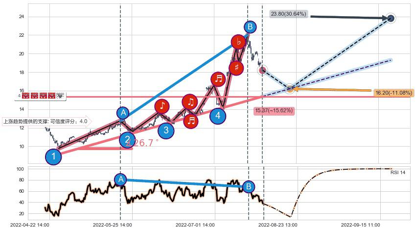 ➢ 预测:2022-08-22 11:00,【小幅回撤】稳定目前上涨趋势的前提下,预测价格:16.20