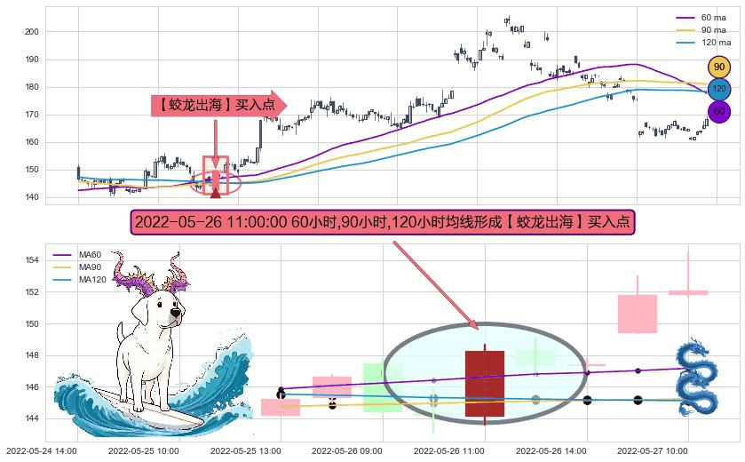 形态多维评估: ⚀ 2022-05-26 11:00:00小时显现 60小时-90小时-120小时均线 【蛟龙出海】买入点 看多信号,后市看涨,买入