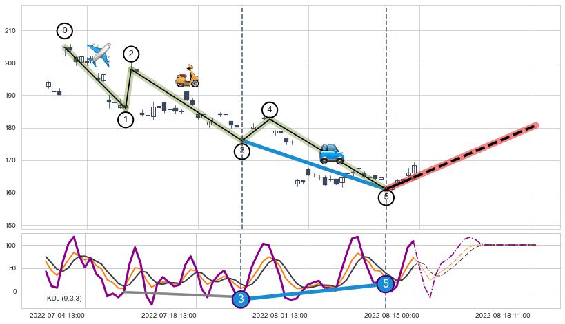 ➢ 第五驱动浪【动能】:🚙 79.94%, 是3个下跌浪中【中等】动能