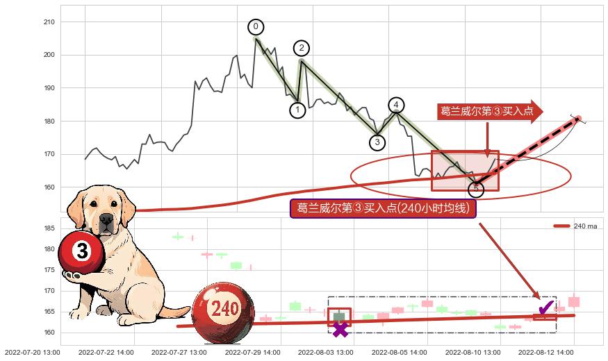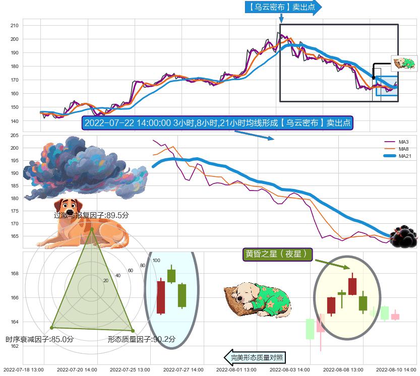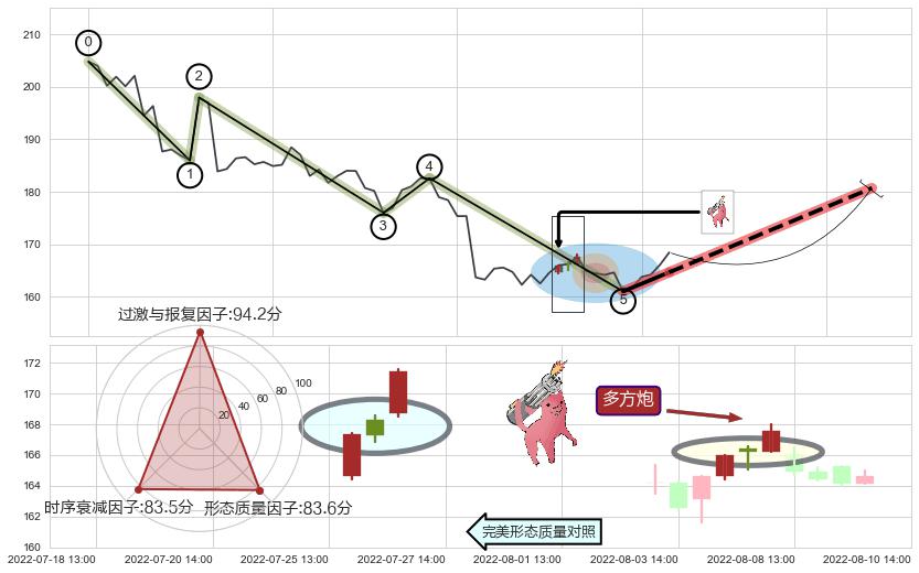 ♘ 在最后的下跌阶段2022-06-30 13:00至2022-08-12 13:00,存在 破位边缘的阻力位 ,阻力价格166.60,可信任强度84.71%,其距离最后价格168.44相差 -1.10%