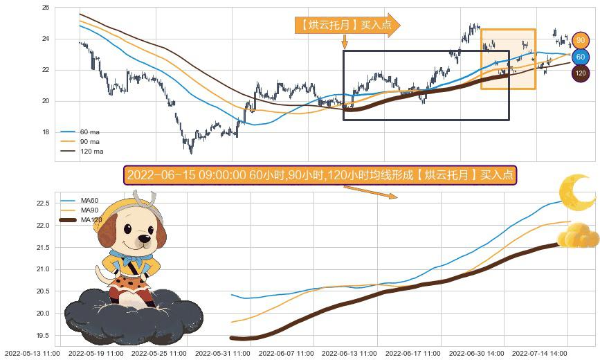 ⚀ 2022-05-30 10:00:00小时-2022-07-15 13:00:00小时显现 60小时-90小时-120小时均线 【烘云托月】买入点 看多信号,后市看涨,买入