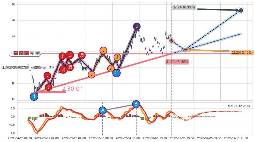 ♘ 支撑价格位21.50,可信任强度93.69%,距离最后交易2022-08-12 14:00形成的收盘价格23.42相差 -8.20%