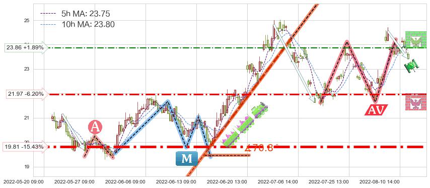 ♘ 阻力价格位23.86,可信任强度52.16%,距离最后交易2022-08-12 14:00形成的收盘价格23.42相差 +1.89%