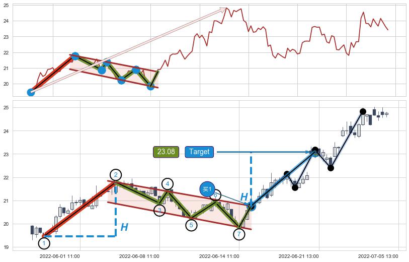 ➣ 最小中继整理涨幅→𝐇: 2.320 (𝐇旗杆的长度:旗杆起点→顶点)