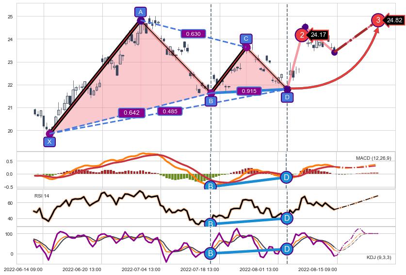 ➣ 已完成【伽利】形态起点X: 06-14:11, 终点D: 08-02:14, 共82交易小时