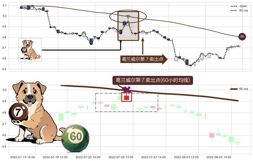 ⚀ 2022-07-22 14:00:00-小时显现 葛兰威尔均线 60小时均线 第⑦卖出点 下降趋势的中继信号,后市看跌,卖出信号