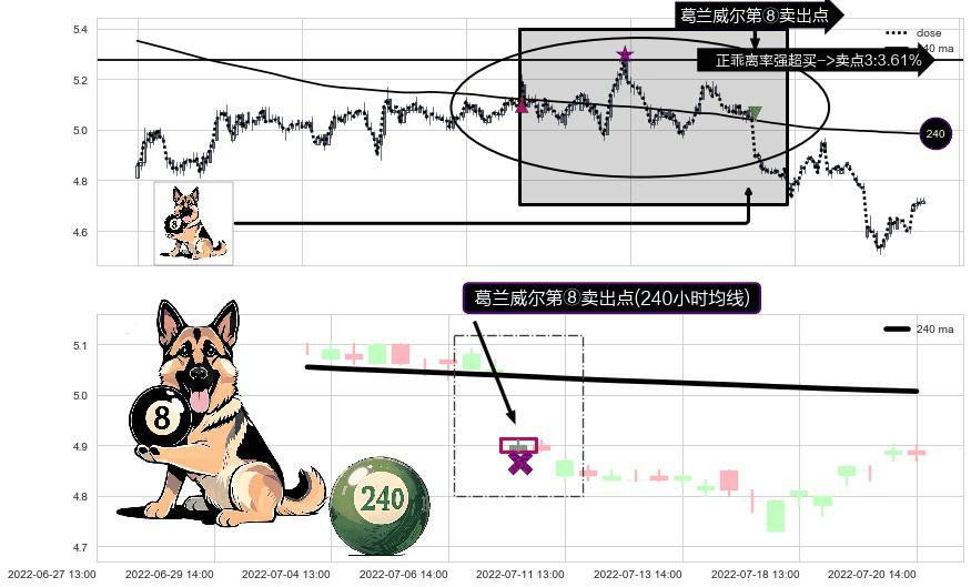 ⚀ 2022-07-08 13:00:00-小时显现 葛兰威尔均线 240小时均线 第⑧卖出点 下降趋势的中继信号,后市看跌,卖出信号