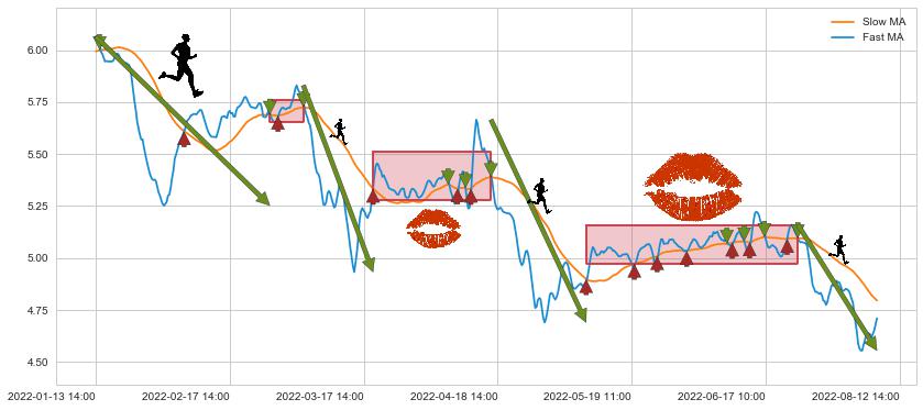05-10 13:00至07-04 13:00 慢线与快线多次接触,存在上下穿越,有缠绕