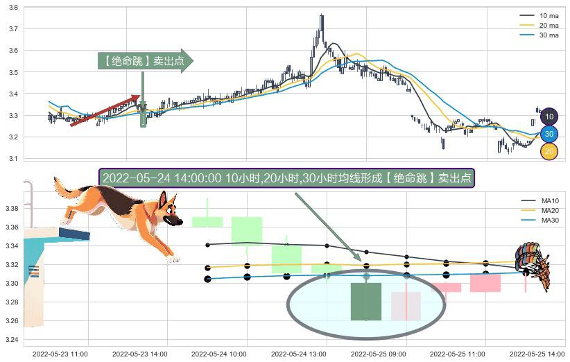 ⚀ 2022-05-24 14:00:00小时显现 10小时-20小时-30小时均线 【绝命跳】卖出点 看空信号,后市看跌,卖出
