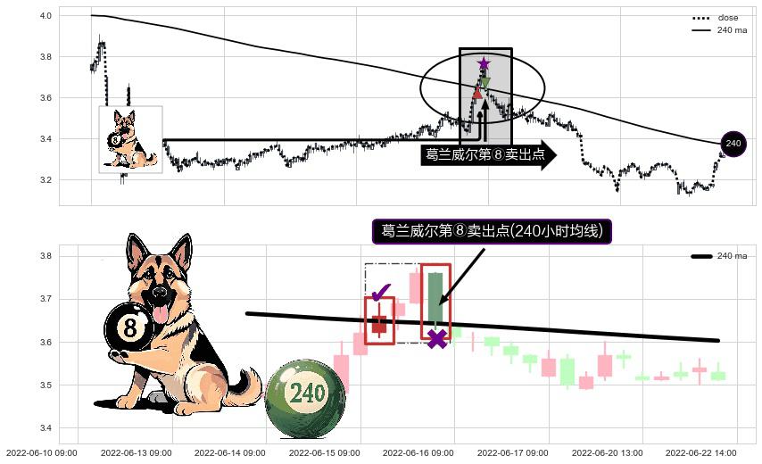 ⚀ 2022-06-15 14:00:00-小时显现 葛兰威尔均线 240小时均线 第⑧卖出点 下降趋势的中继信号,后市看跌,卖出信号