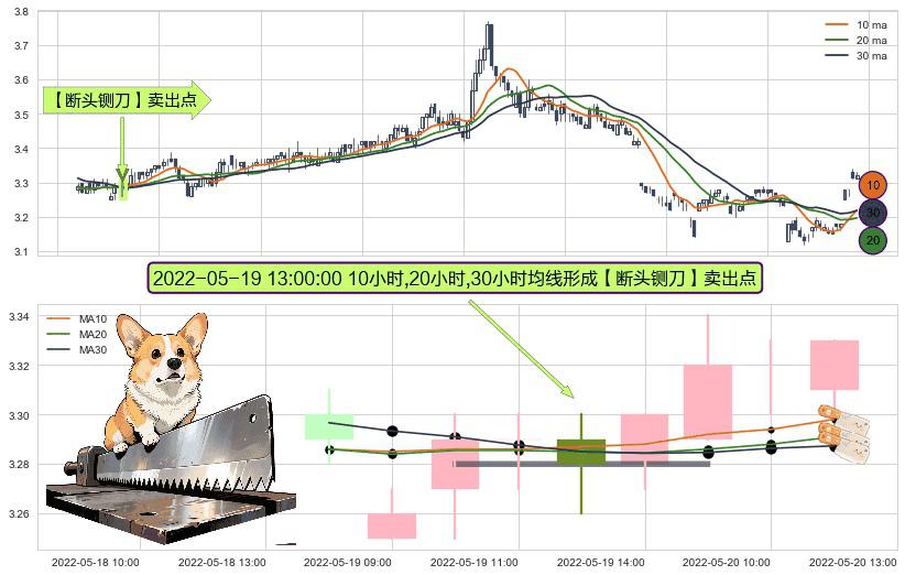 ⚀ 2022-05-19 13:00:00小时显现 10小时-20小时-30小时均线 【断头铡刀】卖出点 看空信号,后市看跌,卖出