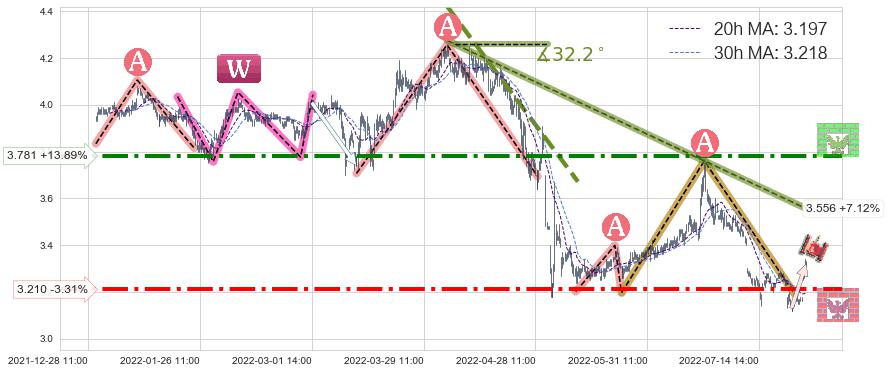 ♞ 20小时均线:3.197,30小时均线:3.218→ 快线<慢线
