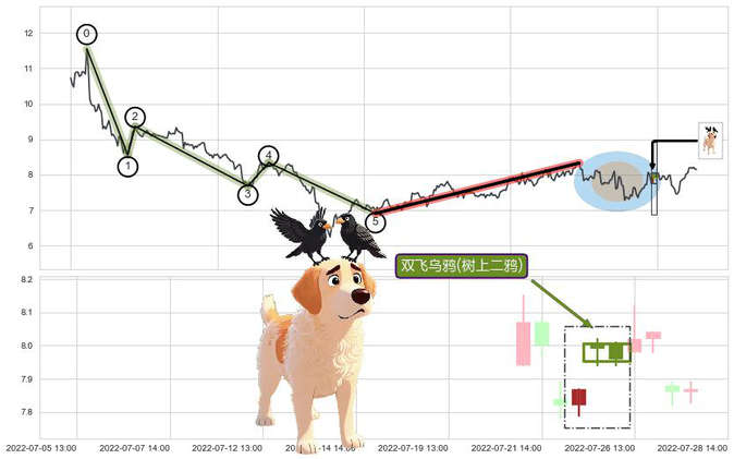 ➢ 🐸 双飞乌鸦(树上二鸦)形态方向: 消极反向形态,对未来预期 看空