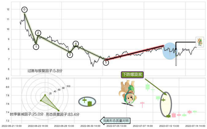 ➢ 🕰 价格走势在2022-07-08 14:00:00至2022-07-11 13:00:00期间形成下跌螺旋桨,残存影响值:-2.21