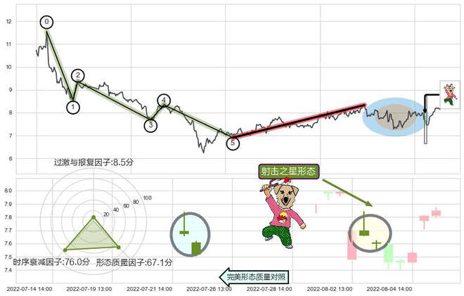 ➢ 🕰 价格走势在2022-08-02 14:00:00至2022-08-03 13:00:00期间形成射击之星形态,残存影响值:-3.53