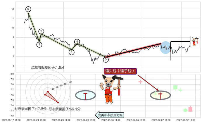 ➢ 🕰 价格走势在2022-07-06 14:00:00至2022-07-06 14:00:00期间形成锤头线(锤子线),残存影响值:1.64