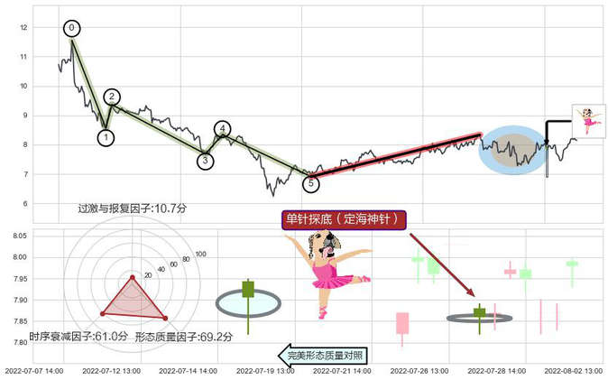 ➢ 🕰 价格走势在2022-07-27 13:00:00至2022-07-27 13:00:00期间形成单针探底(定海神针),残存影响值:3.33