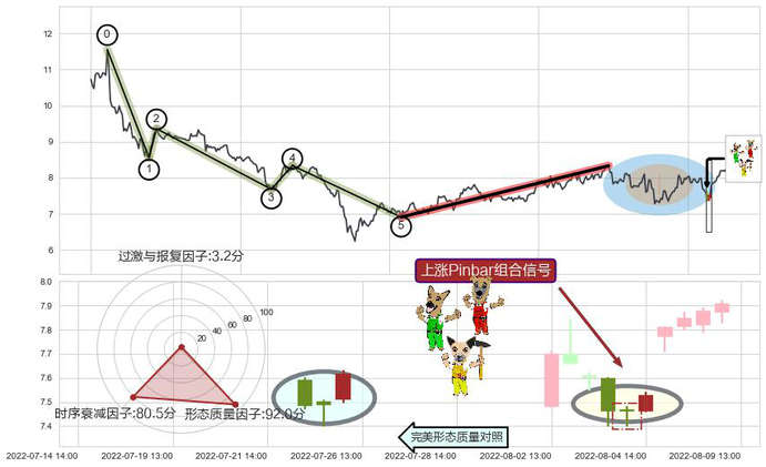 ➢ 🕰 价格走势在2022-08-03 14:00:00至2022-08-04 14:00:00期间形成上涨Pinbar组合信号,残存影响值:4.37