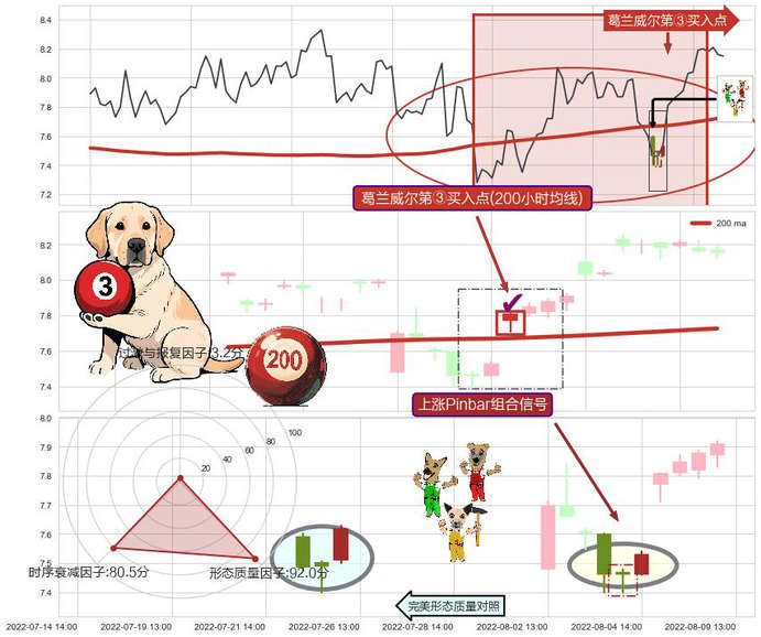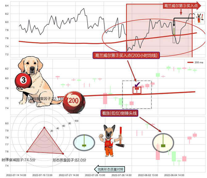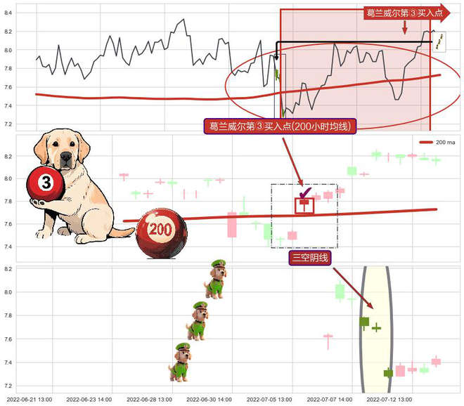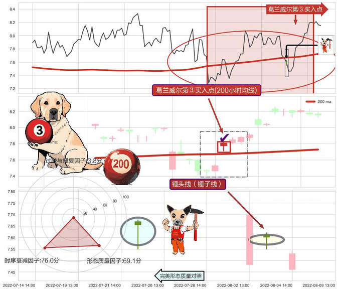 ➣ 2022-08-05 13:00:00-小时显现 葛兰威尔均线 200小时均线 第③买入点 上升趋势的中继信号,后市看涨,买进信号