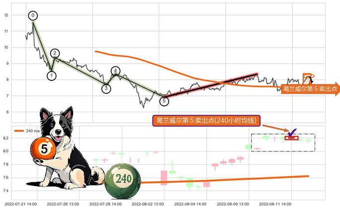 ➣ 🕰 价格走势在2022-08-05 14:00:00至2022-08-12 14:00:00期间形成葛兰威尔第⑤卖出点,残存影响值:-6.09