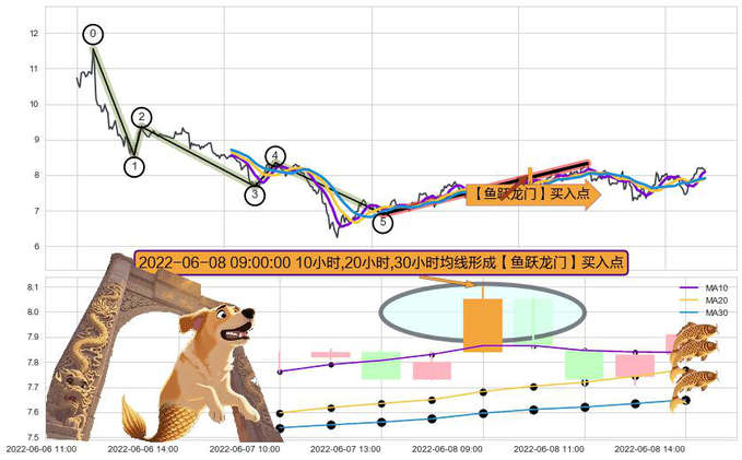 ➣ 🕰 价格走势在2022-06-08 09:00:00至2022-06-08 09:00:00期间形成【鱼跃龙门】买入点,残存影响值:1.33