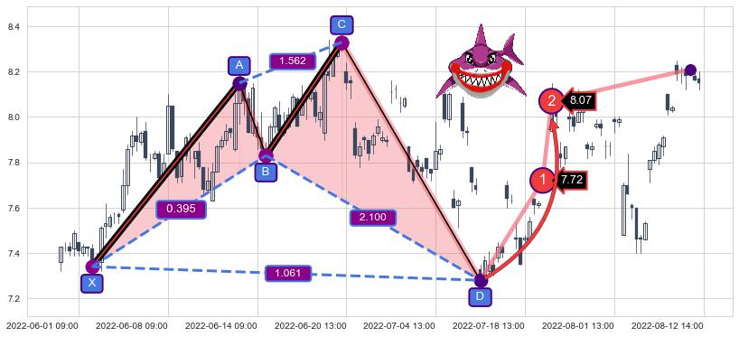 ➣ 已完成【鲨鱼】形态起点X: 06-01:13, 终点D: 07-11:13, 共88交易小时