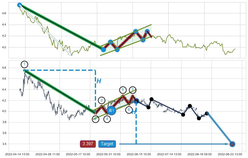 ➣ 最小中继整理跌幅→𝐇: 0.7900 (𝐇旗杆的长度:旗杆起点→顶点)