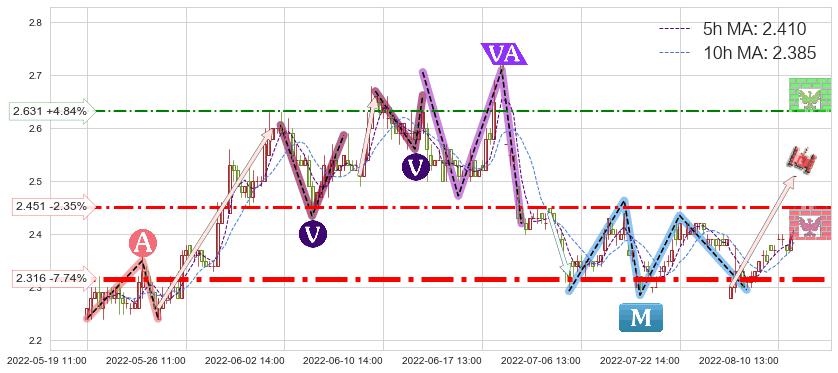 ♘ 阻力价格位2.631,可信任强度51.31%,距离最后交易2022-08-12 13:00形成的收盘价格2.510相差 +4.84%