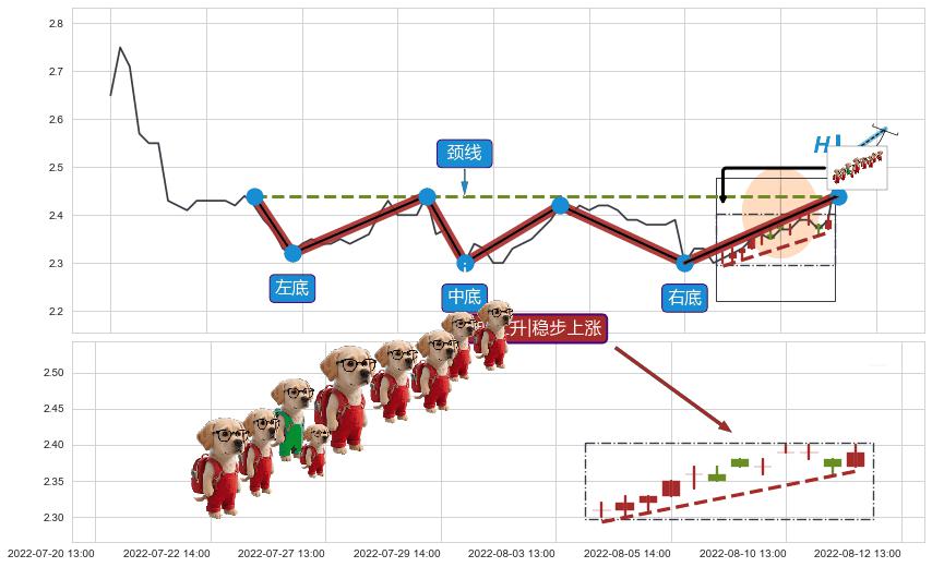 ➢ 收盘价(08-11:13: 2.370 )→回踩→第一根k线高点(08-09:14: 2.380 )
