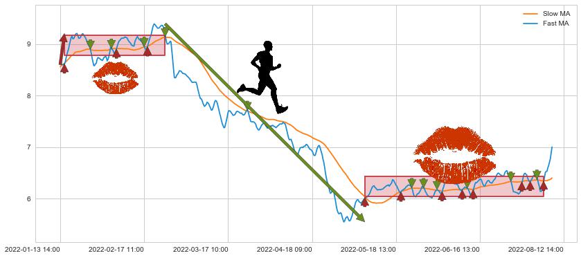 01-14 14:00至02-24 11:00 慢线与快线多次接触,存在上下穿越,有缠绕