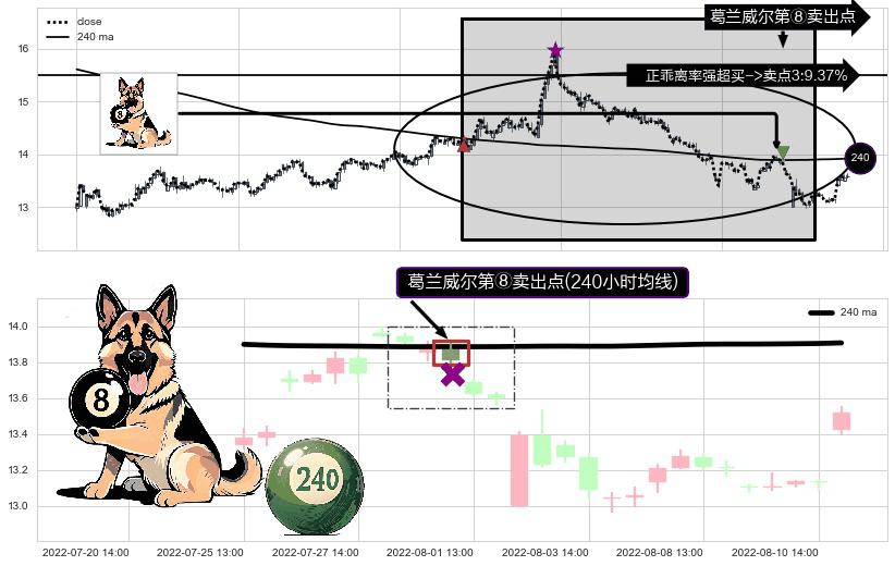 ⚁ 240小时均线 第⑧卖出点 属于 均线服从 信号,属于趋势运行的【常态】即信号期望为下降趋势的中继
