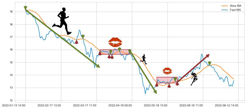 01-13 14:00至03-21 11:00 慢线与快线呈空头排列, 慢线与快线接触少,无缠绕