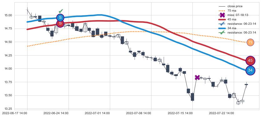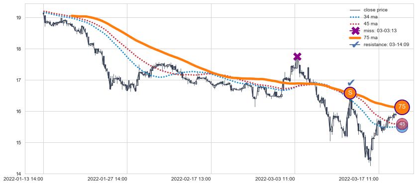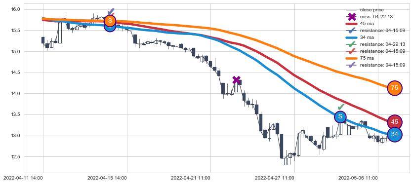⚂ 2022-06-08 10:00:00-小时均线向上突破,2022-07-29 14:00:00-小时重新下穿均线破位,均线阻力再次生效