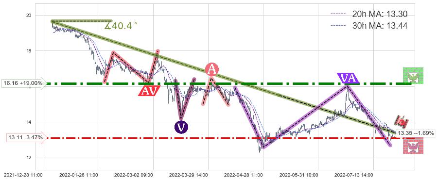 ♞ 20小时均线:13.30,30小时均线:13.44→ 快线<慢线