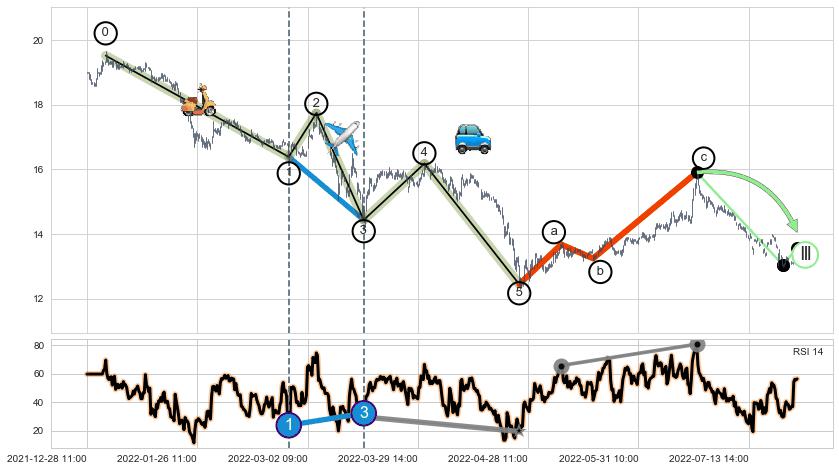 ➣ a,c调整浪MACD, RSI, KDJ走势都【未出现】背离,abc走势延续, 5浪反转概率增强