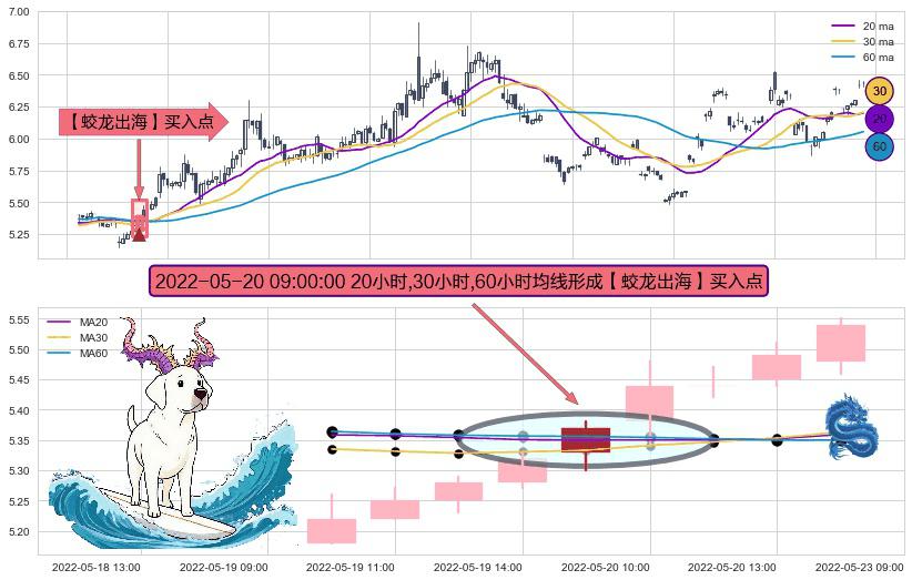 ⚀ 2022-05-20 09:00:00小时显现 20小时-30小时-60小时均线 【蛟龙出海】买入点 看多信号,后市看涨,买入