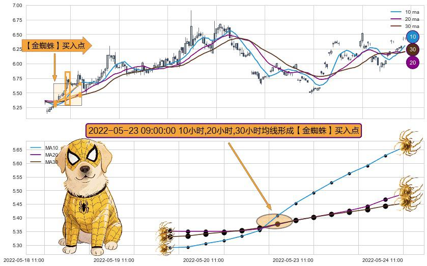 ⚀ 2022-05-23 09:00:00小时显现 10小时-20小时-30小时均线 【金蜘蛛】买入点 看多信号,后市看涨,买入