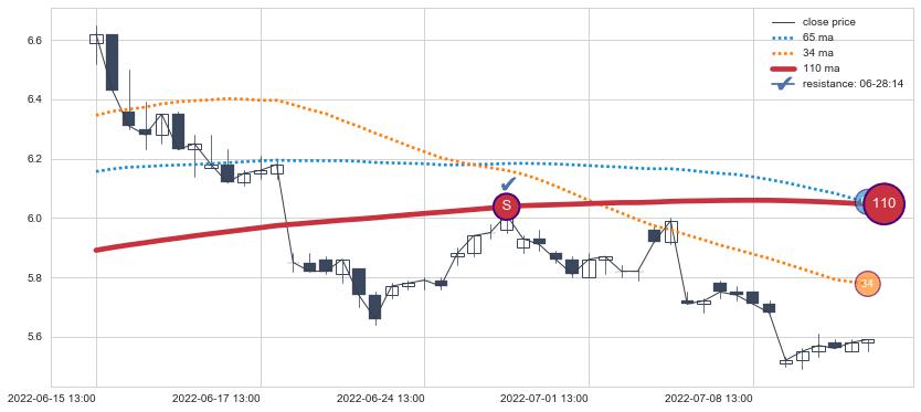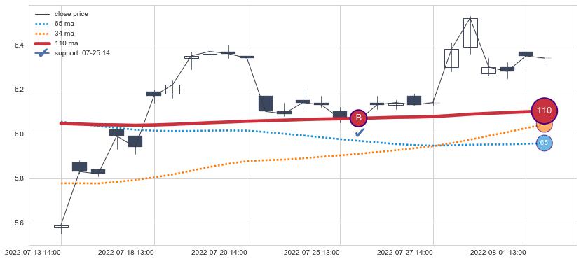 ⚂ 2022-07-28 14:00:00小时开盘向上跳空高开+0.16%, 完成蓄势后的上攻一击,收盘突破均线组合