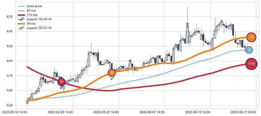⚂ 2022-05-20 09:00:00小时突然冒出一根大阳线,一下子顶穿三条均线且收盘价收在各条均线之上