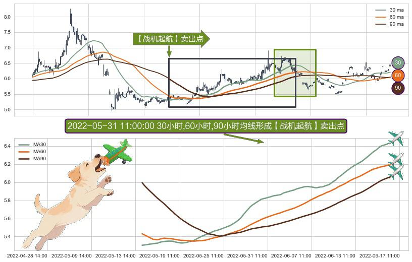 ⚀ 2022-05-16 11:00:00小时-2022-06-16 13:00:00小时显现 30小时-60小时-90小时均线 【战机起航】卖出点 看空信号,后市看跌,卖出