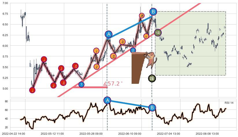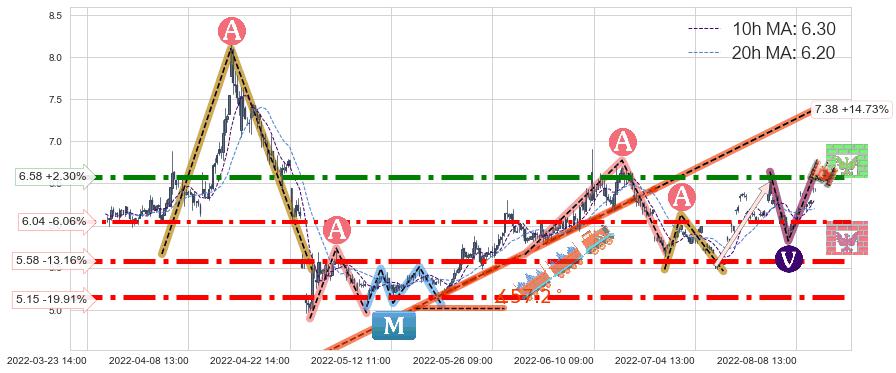♘ 阻力价格位6.58,可信任强度88.05%,距离最后交易2022-08-12 14:00形成的收盘价格6.43相差 +2.30%